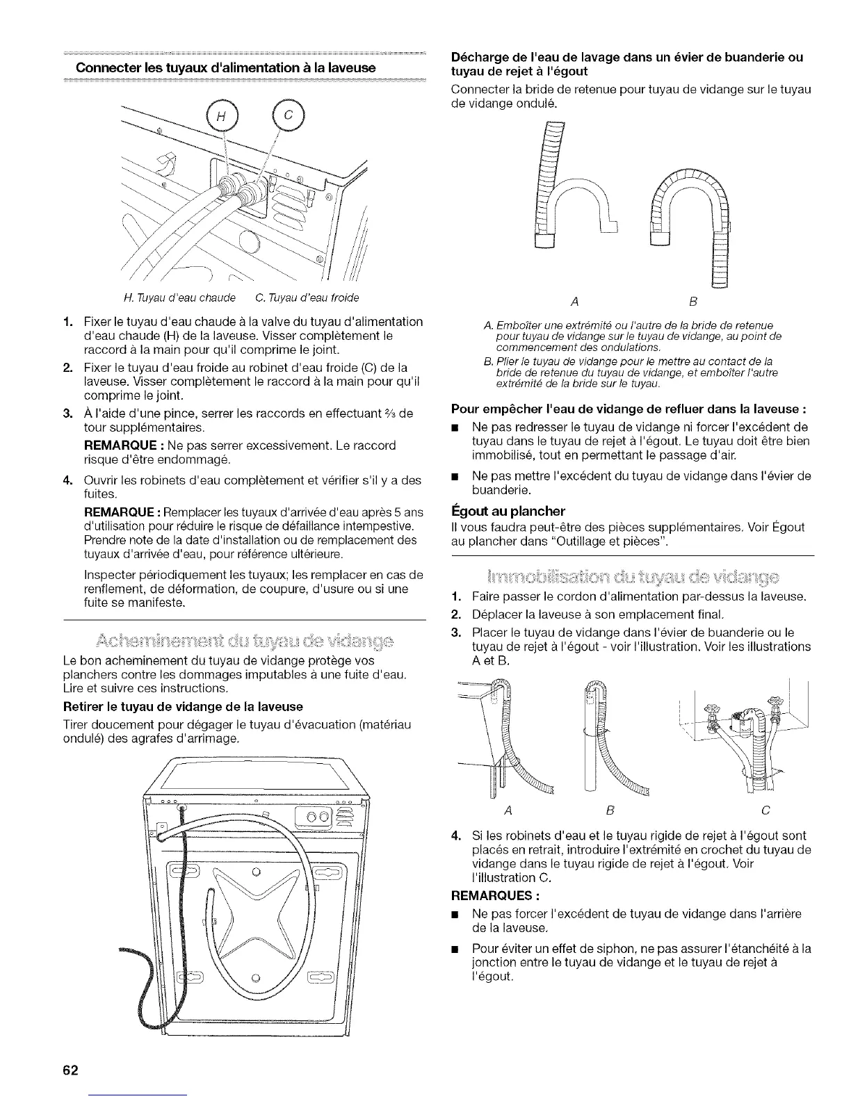 REMARQUE : Remplacer les tuyaux d'arrivee d'eau apr_s 5 ans