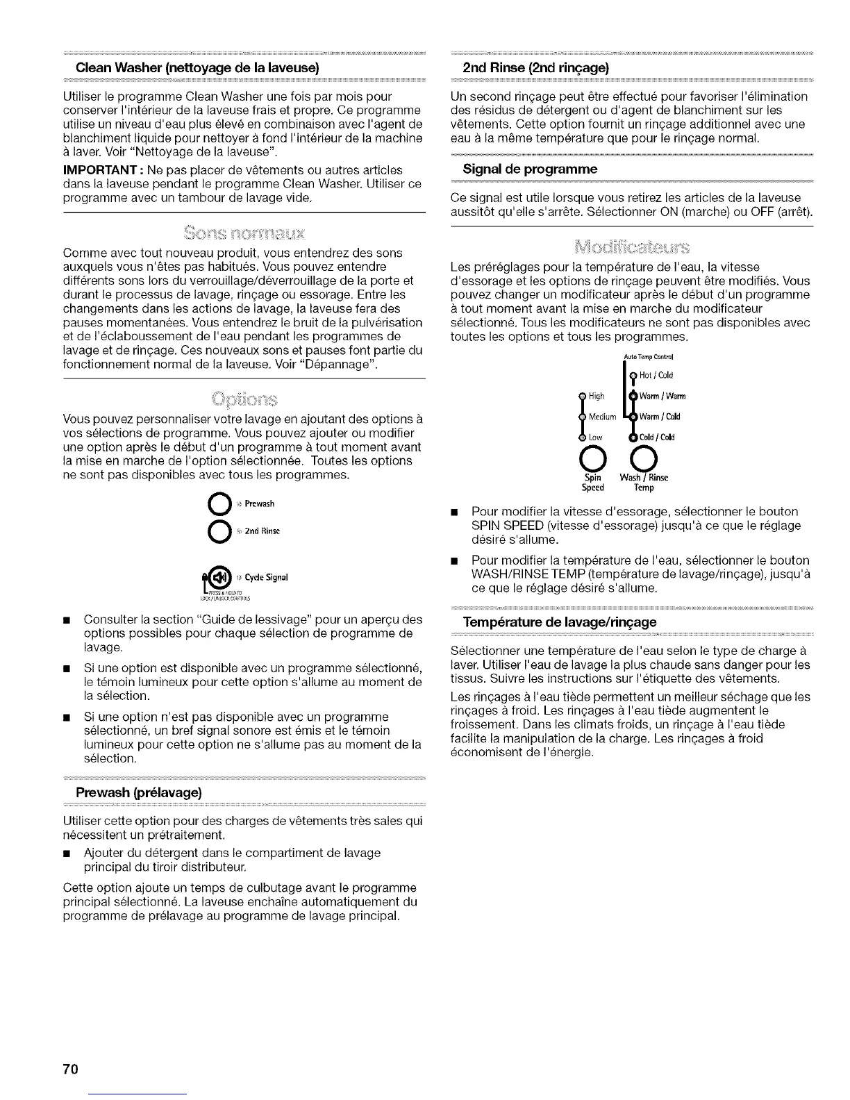 d'essorage et les options de rin(;age peuvent _tre modifies. Vous