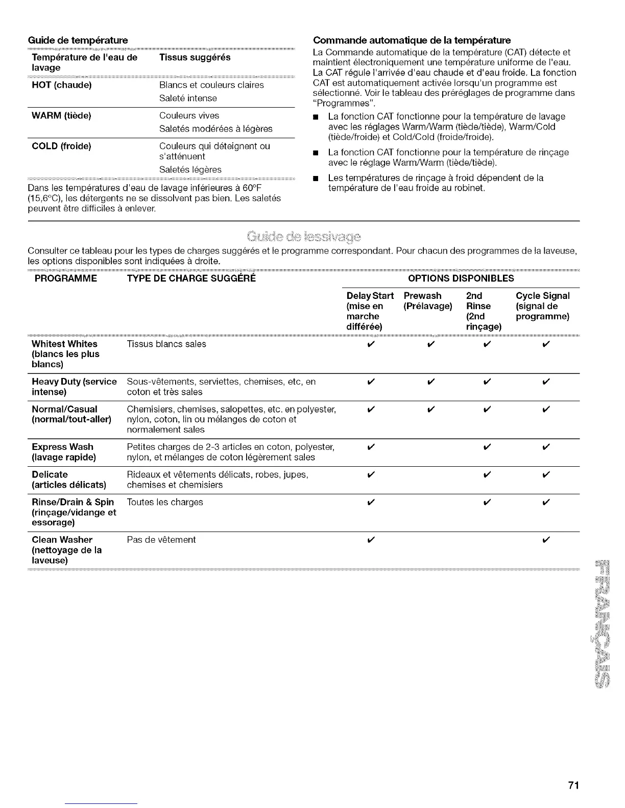 Consulter ce tableau pour les types de charges suggeres et le programme correspondant. Pour chacun des programmes de la laveuse,