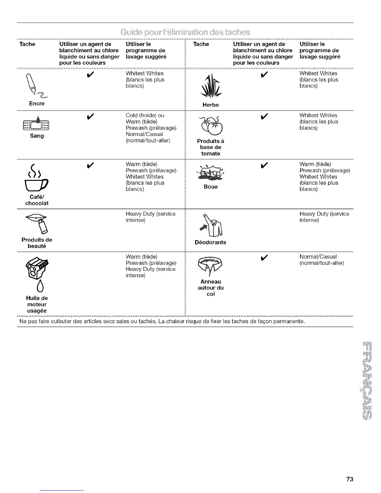Ne pas faire culbuter des articles secs sales ou taches. La chaleur risque de fixer les taches de fagon permanente.