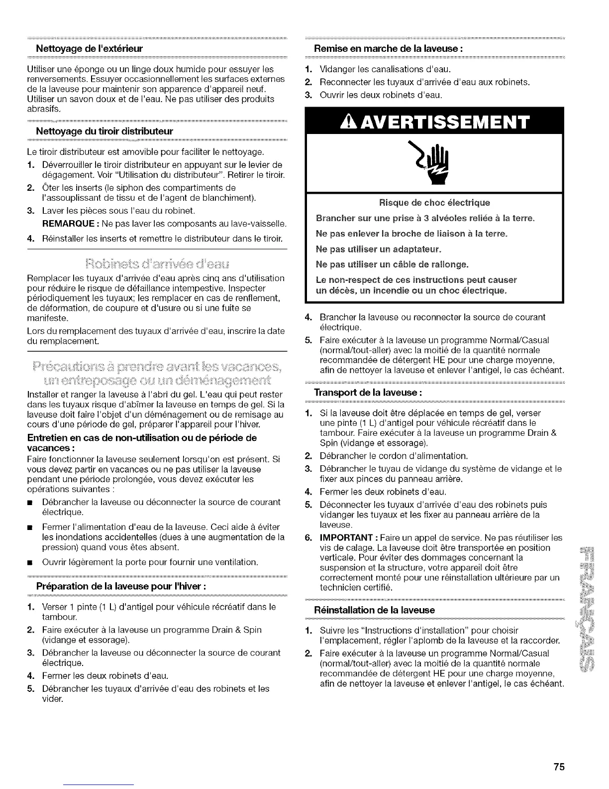 1. Si la laveuse dolt _tre deplacee en temps de gel, verser