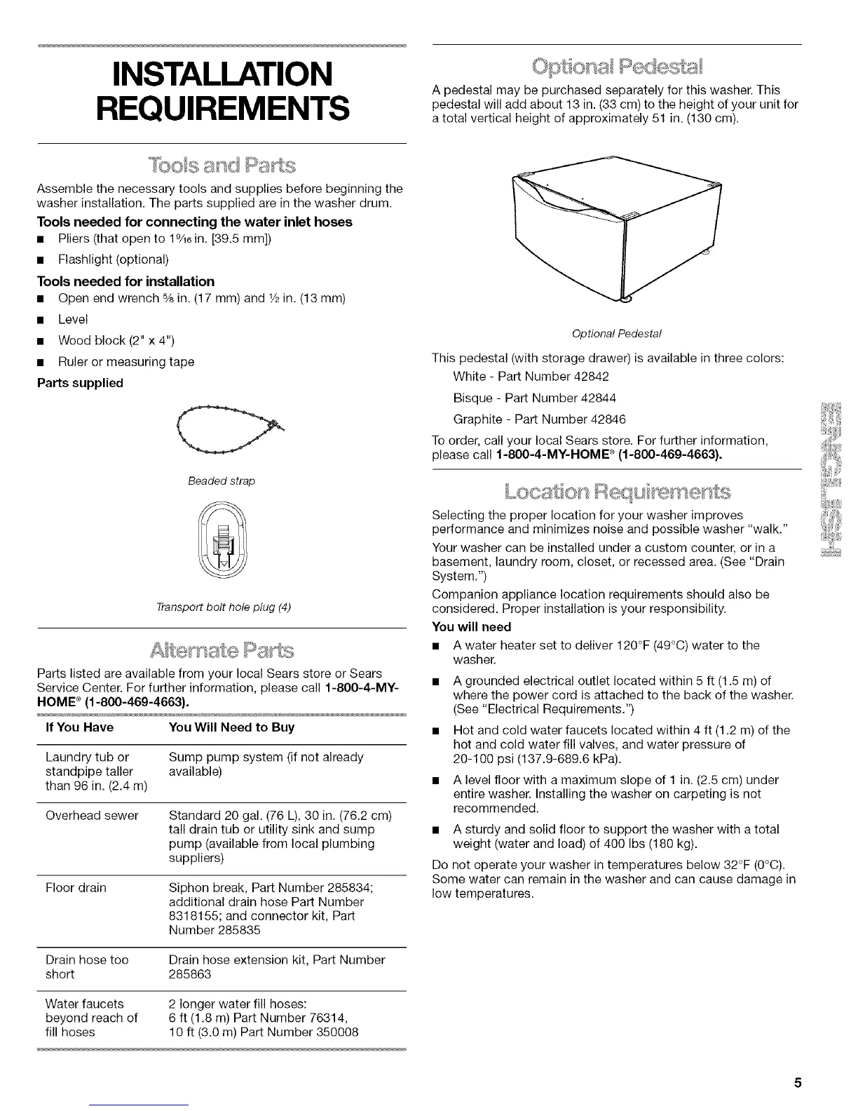 pedestal will add about 13 in. (33 cm) to the height of your unit for