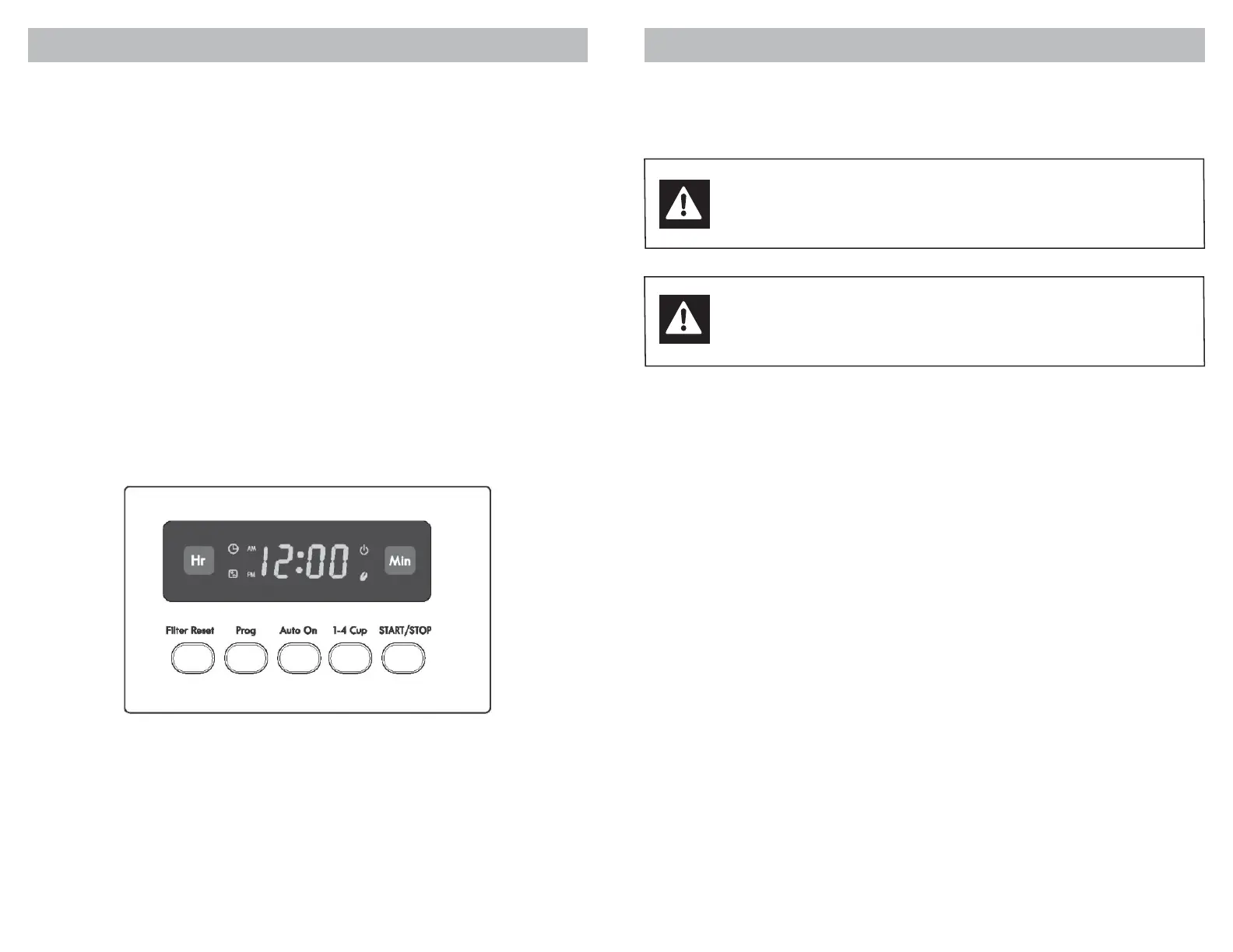 1. Lorsque la cafetière est branchée pour la première fois, l’horloge clignote à l’heure par défaut