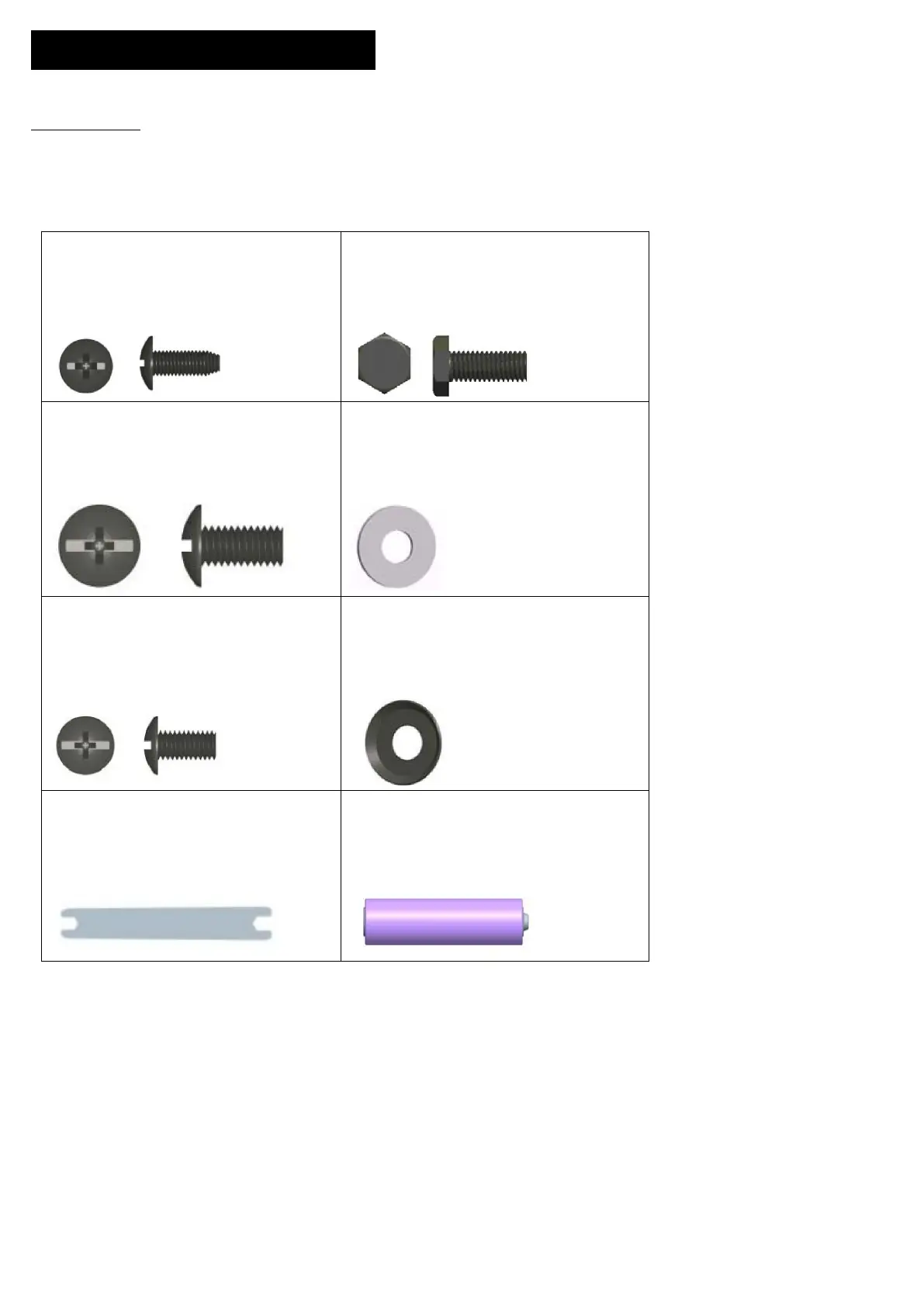 The following hardware is provided in blister pack for convenient use.