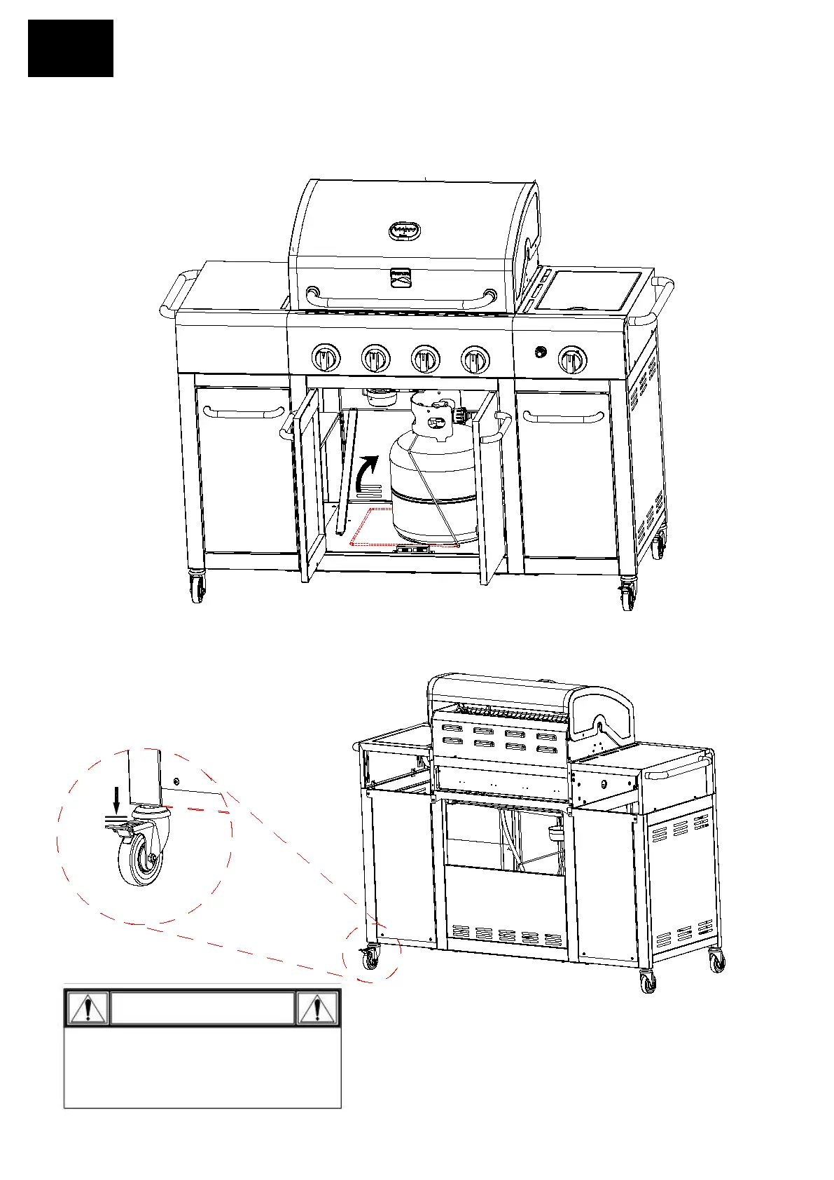When the grill is in the desired location, lock the caster brakes; this will help the grill stay in place for safe operation.
