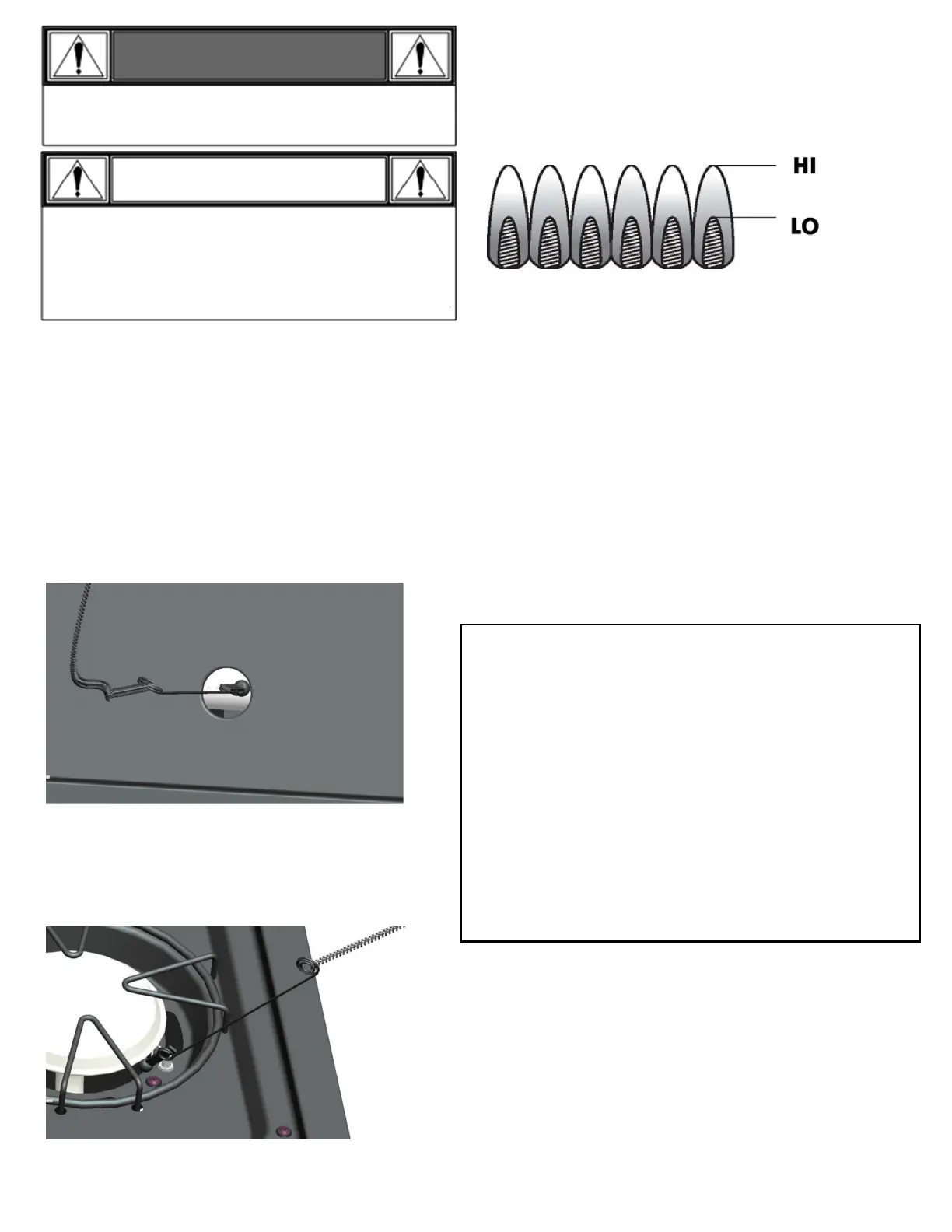 3. Turn searing burner knob to HI. Be sure burner lights and stays lit.