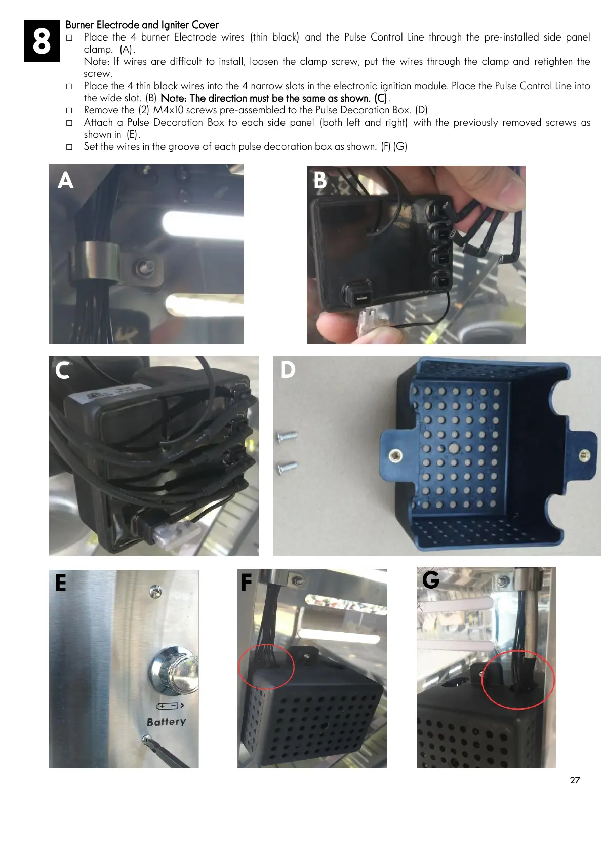 □ Place the 4 burner Electrode wires (thin black) and the Pulse Control Line through the pre-installed side panel