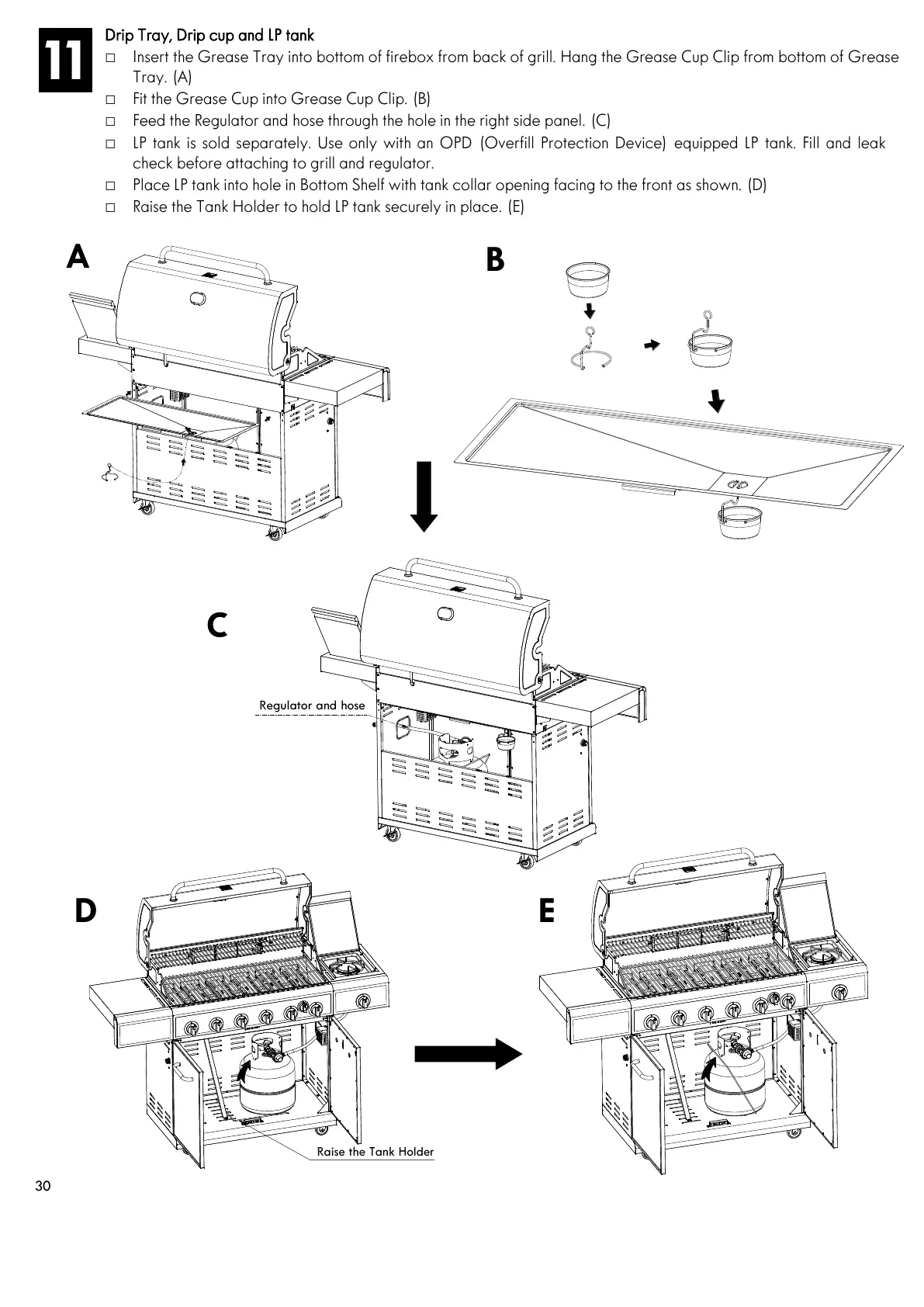 □ Raise the Tank Holder to hold LP tank securely in place. (E)