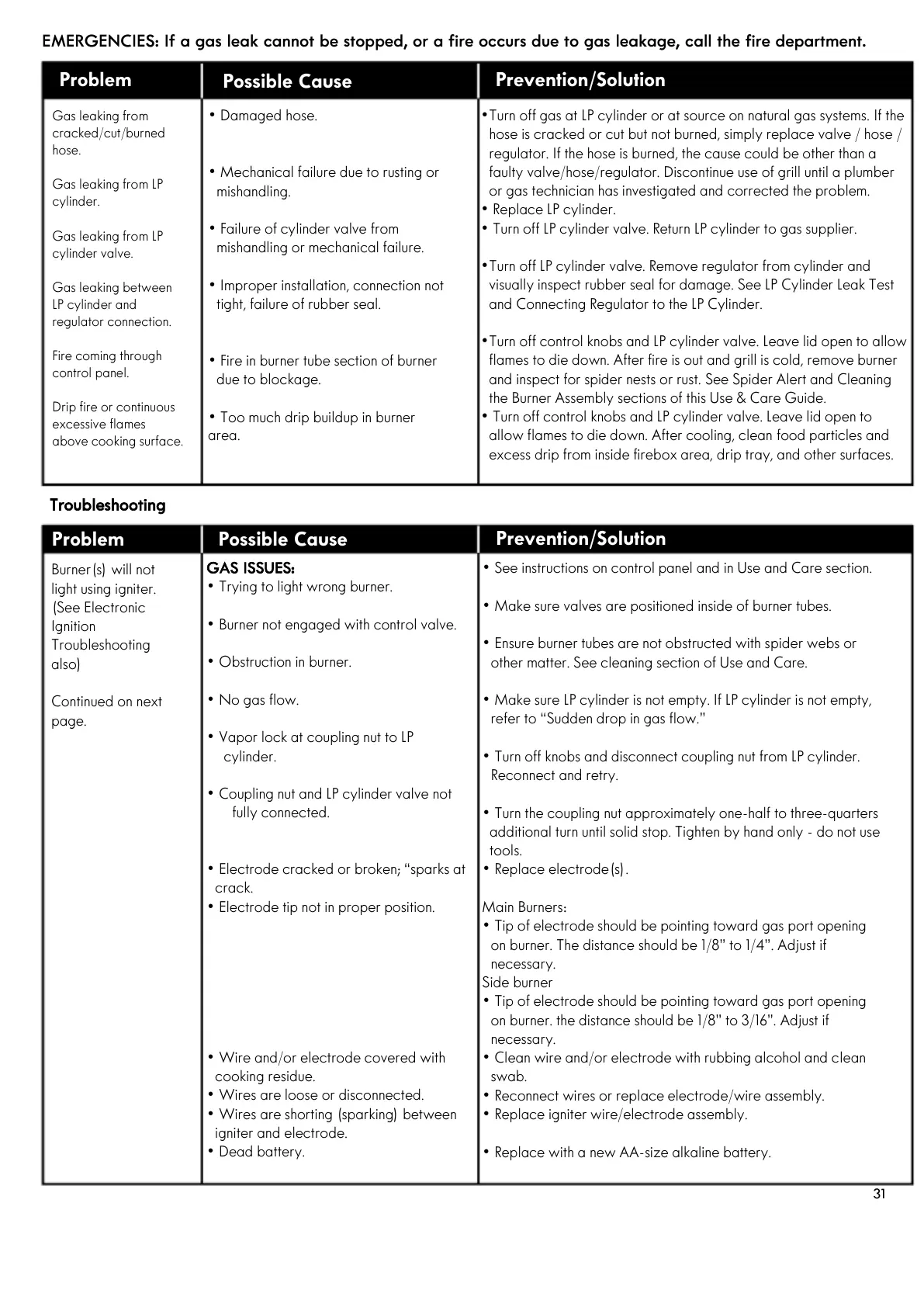 EMERGENCIES: If a gas leak cannot be stopped, or a fire occurs due to gas leakage, call the fire department.