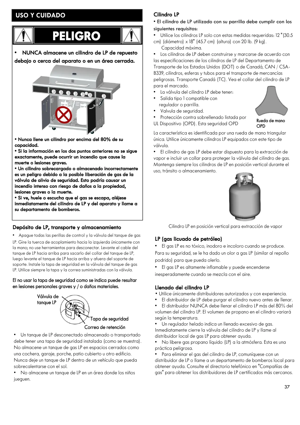 • El cilindro de LP utilizado con su parrilla debe cumplir con los