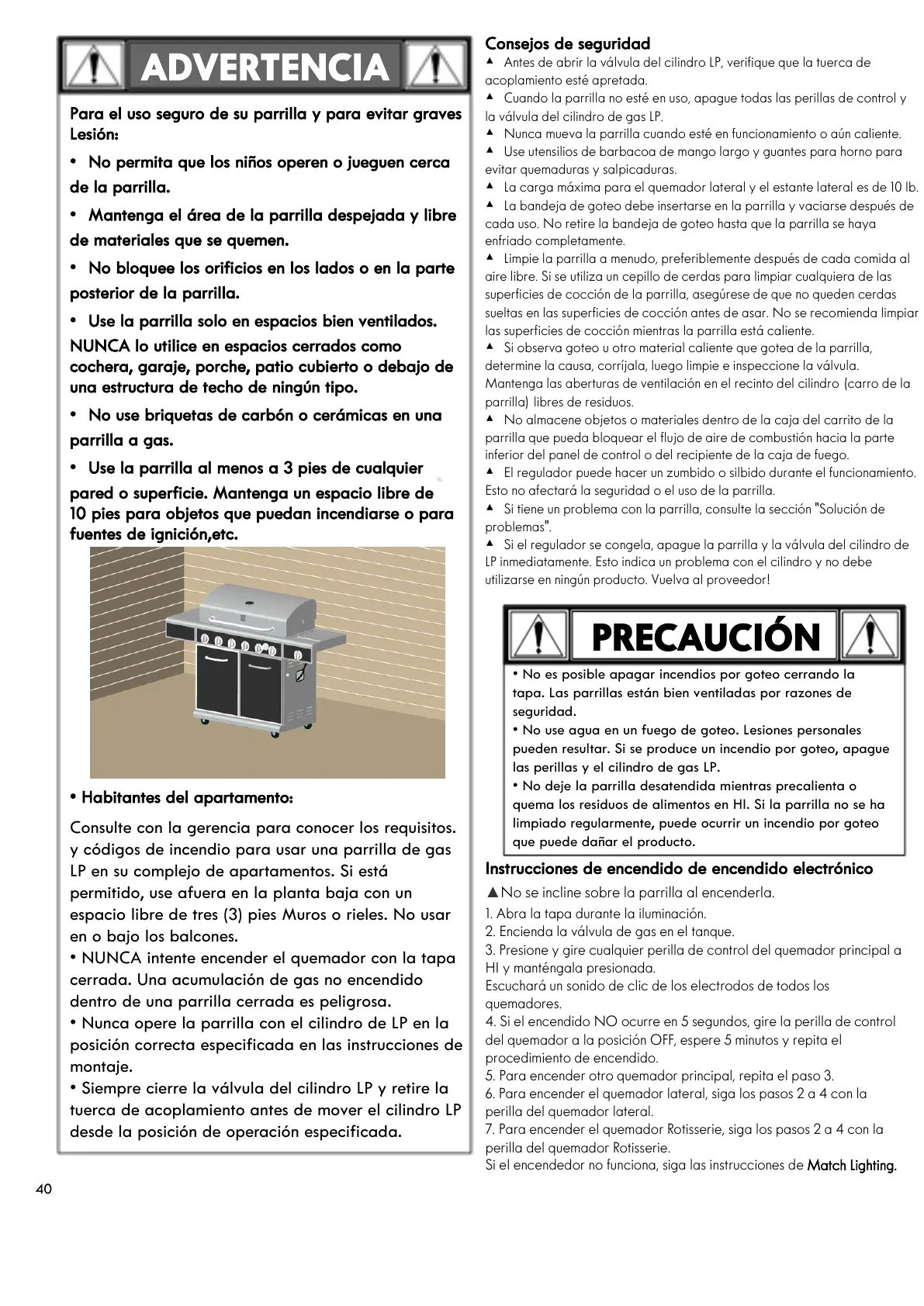 ▲ Si observa goteo u otro material caliente que gotea de la parrilla,
