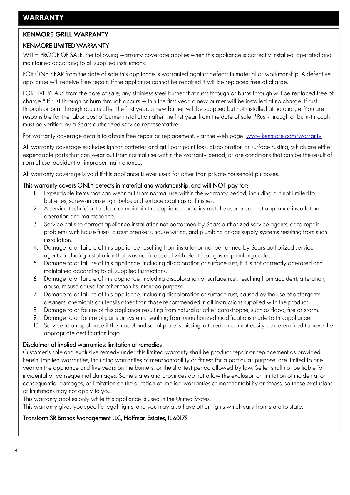 KENMORE GRILL WARRANTY