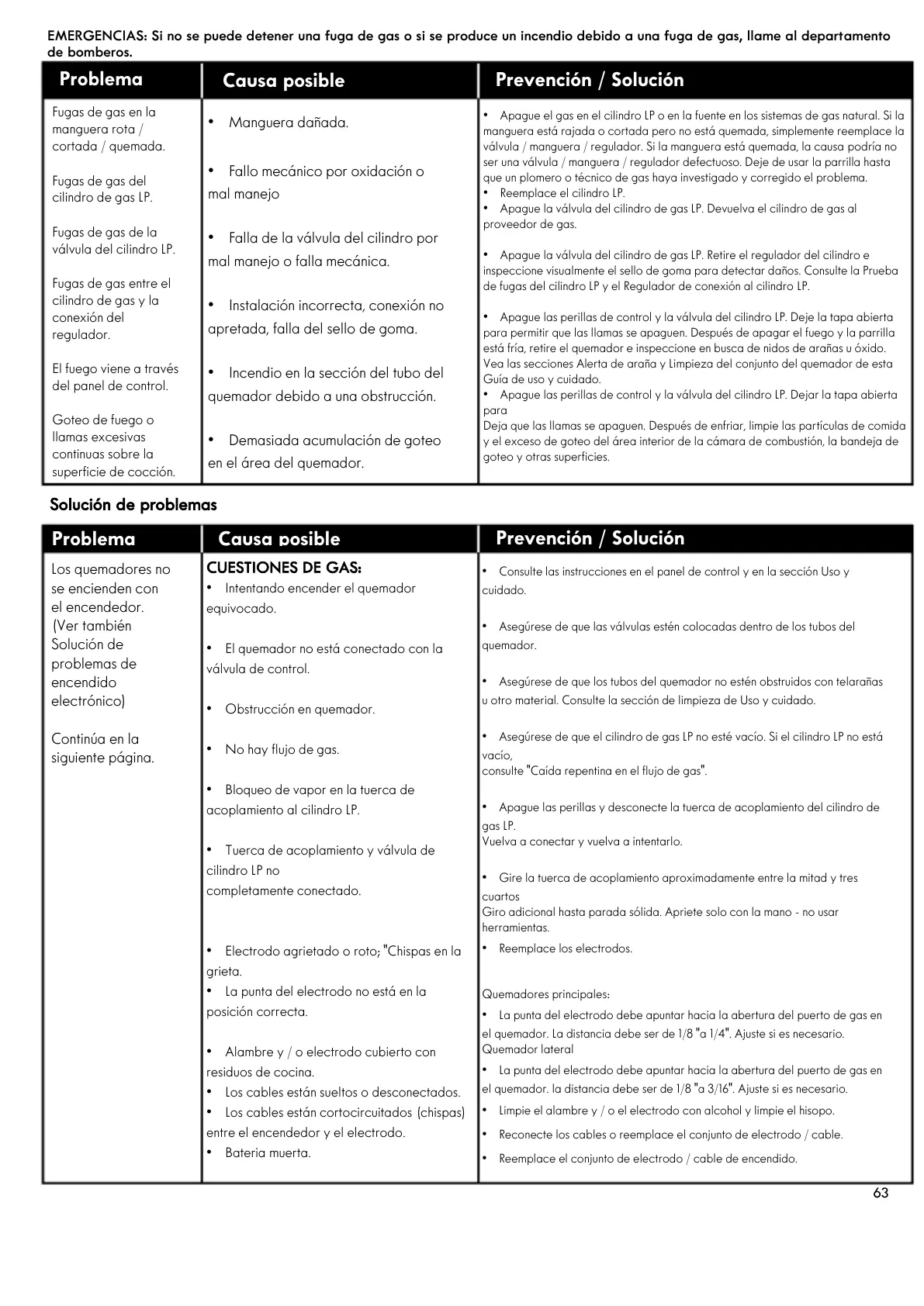 EMERGENCIAS: Si no se puede detener una fuga de gas o si se produce un incendio debido a una fuga de gas, llame al departamento