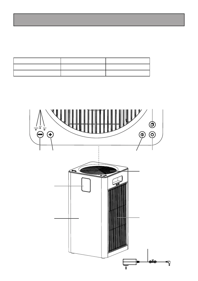 Il est important de connaître les pièces et les caractéristiques de votre purificateur d’air