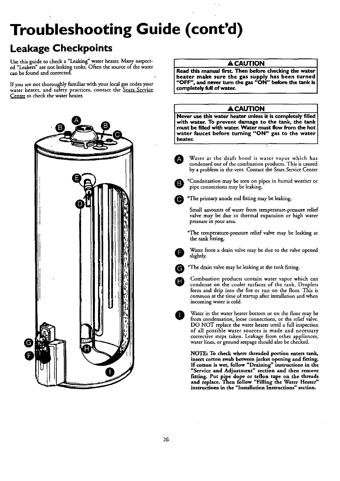and replace. Then follow "Filling the Water Heater"