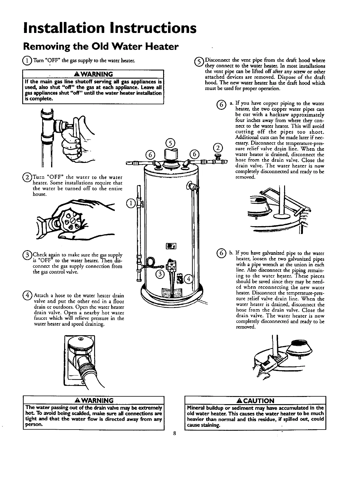 water heater is drained, disconnect the