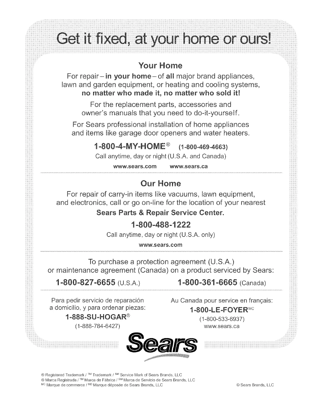 ® Marca Registrada / Marca de Fabrica / Marca de Servicio de Sears Brands, LLC