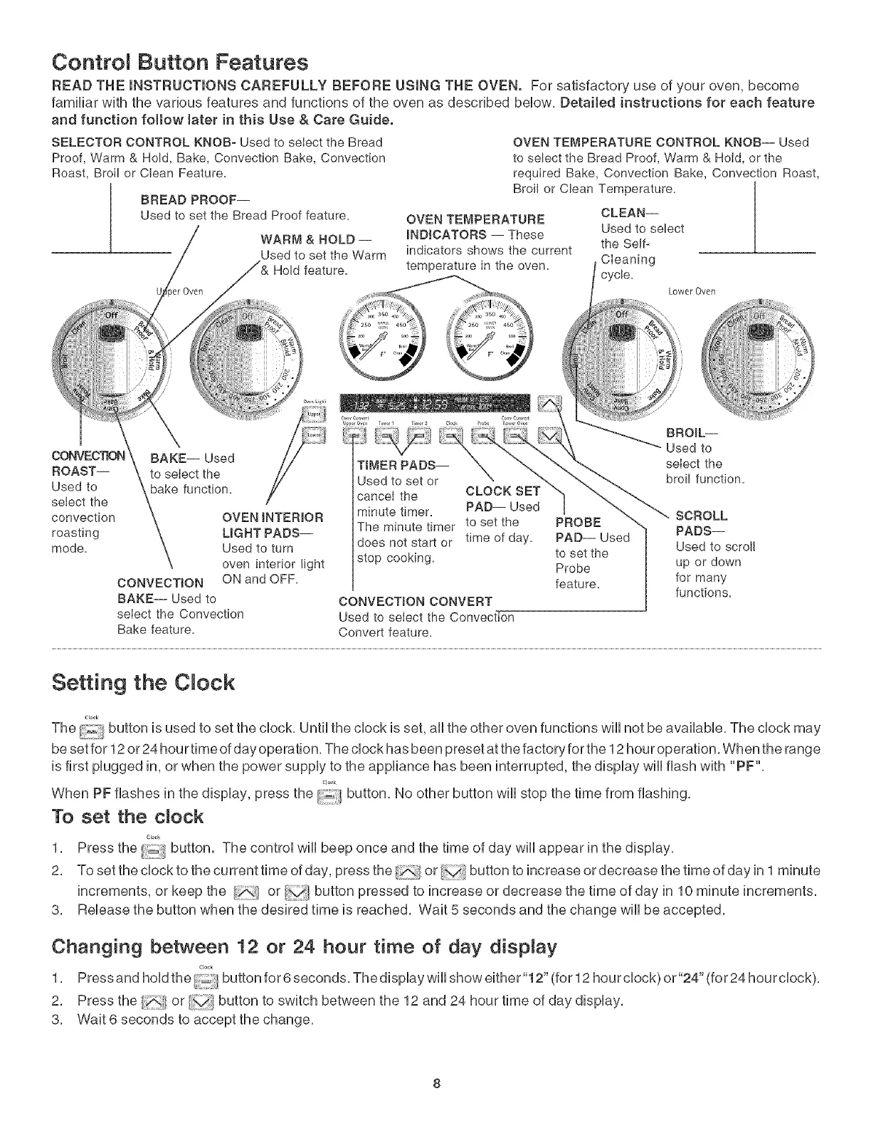 The button is used to set the clock, Until the clock is set, aii the other oven functions wiii not be available, The clock may