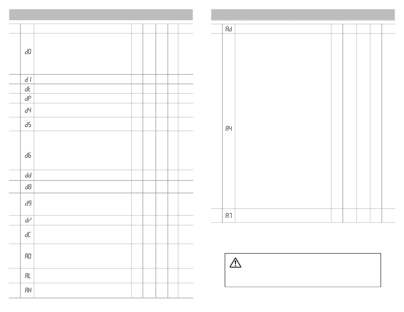 TABLEAU DES PARAMÈTRES TABLEAU DES PARAMÈTRES