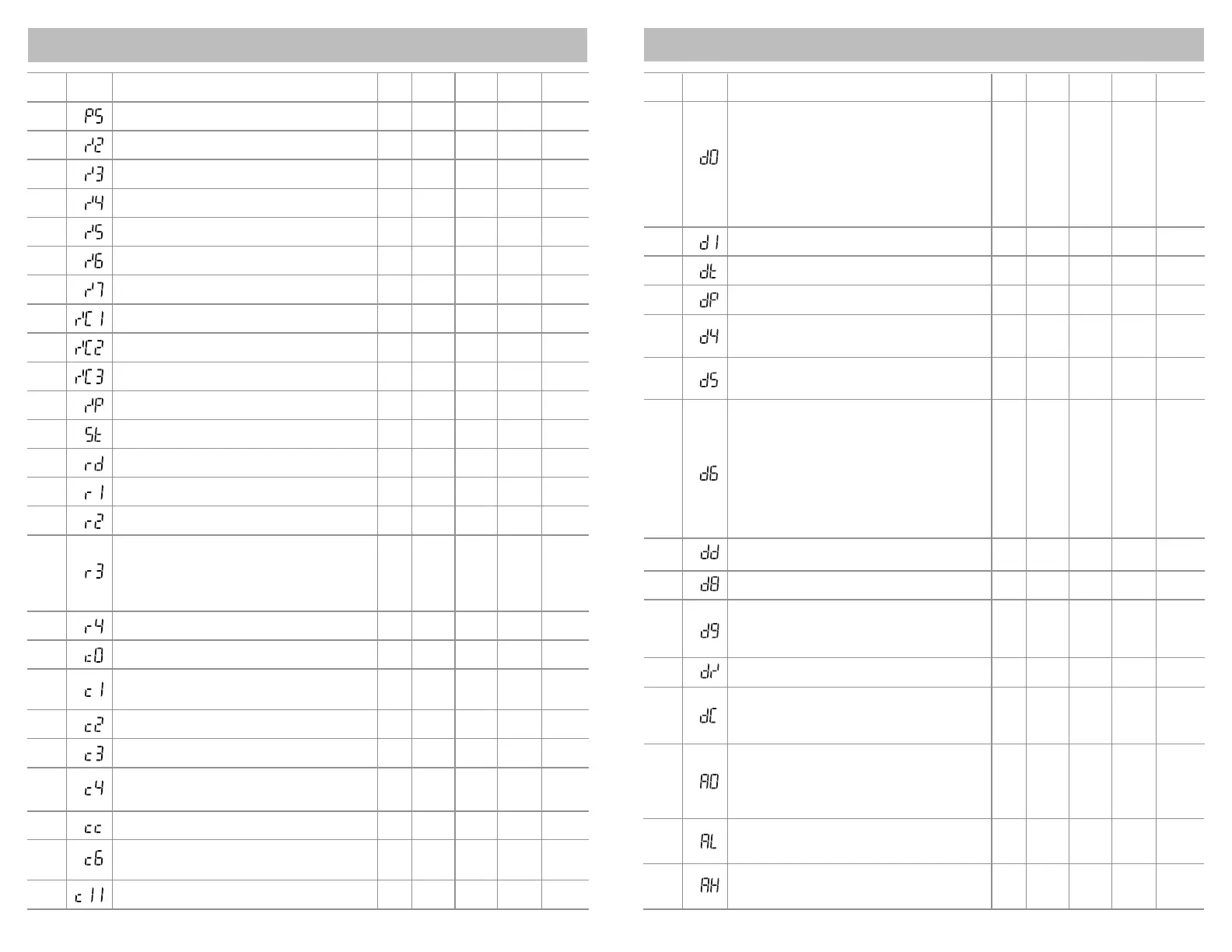 PARAMETER TABLE PARAMETER TABLE