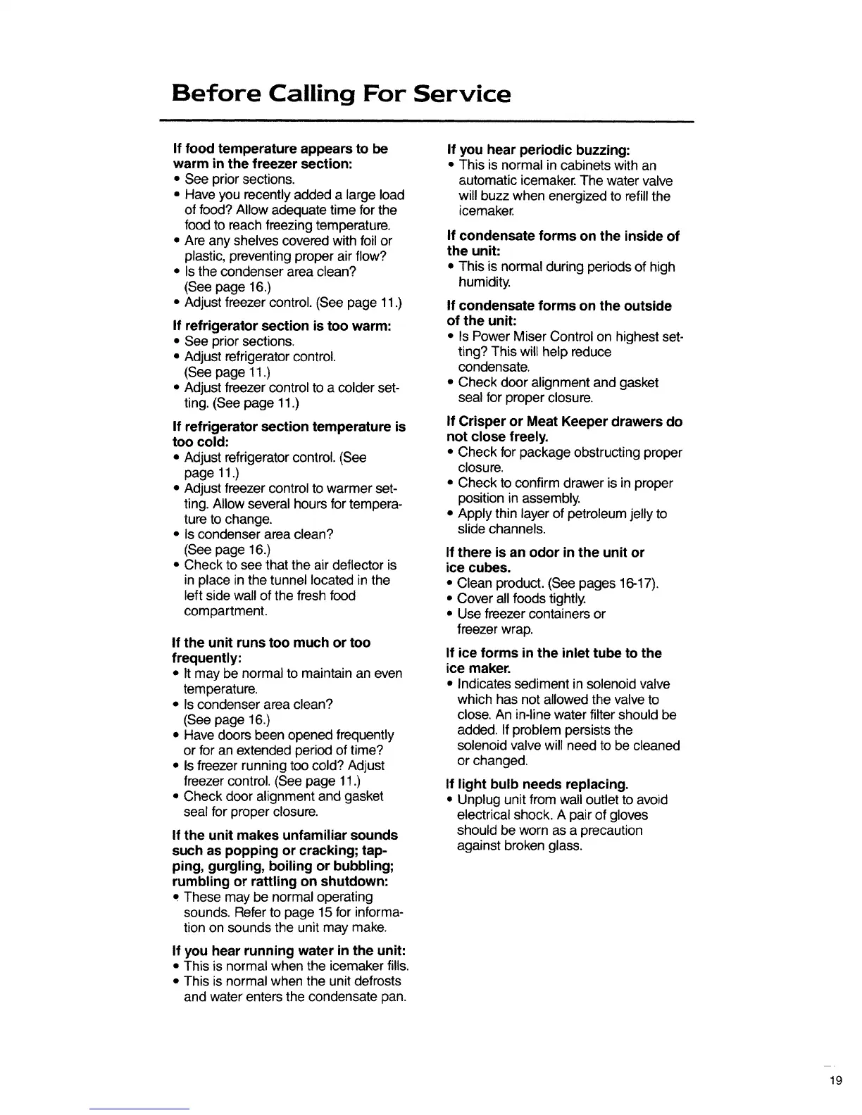 • Adjust freezer control. (See page 11.)