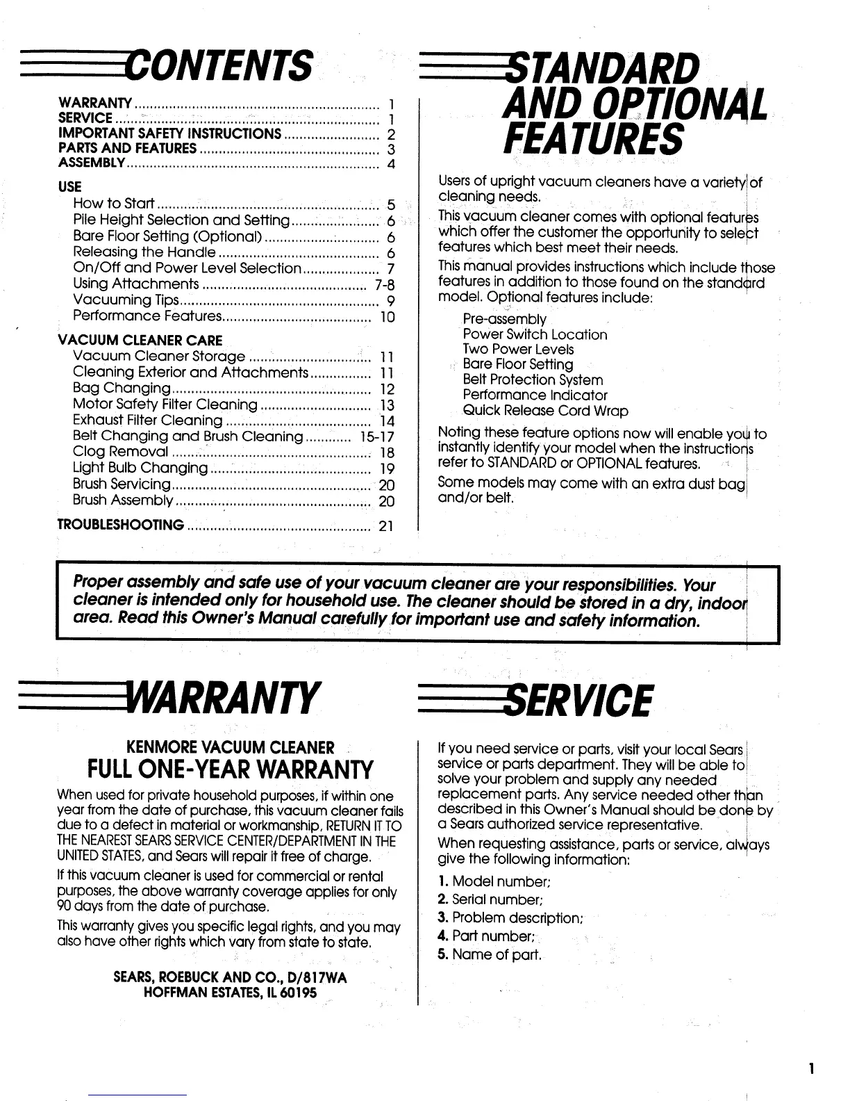 Proper assembly and safe use of your vacuum cleaner are your responsibilities. Your