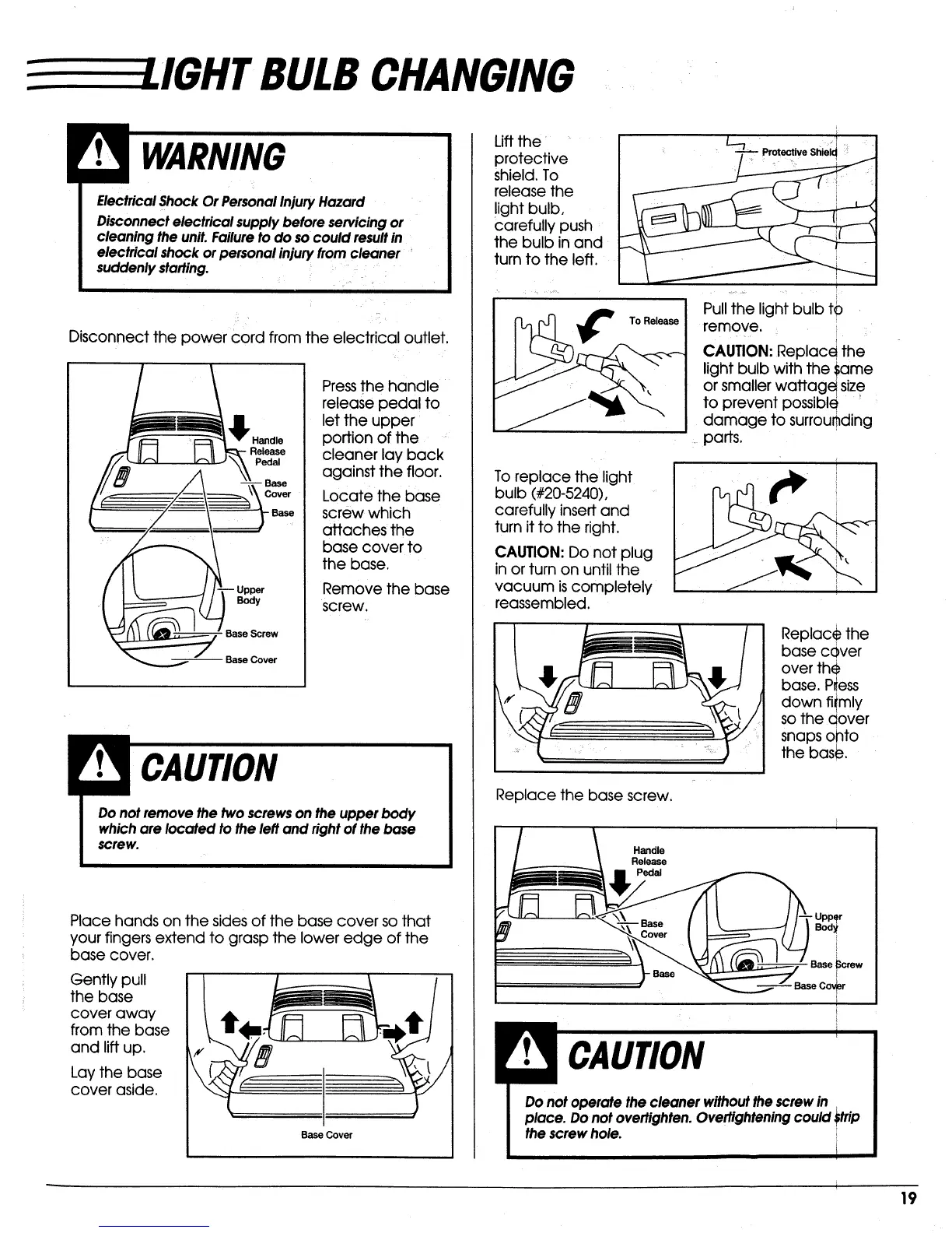 Replace the base screw.