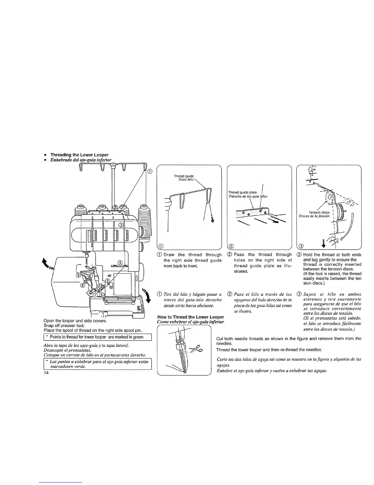 [ " Los puntos a enhebrar para el ojo-guia inferior estdn Jmarcadosenverde.