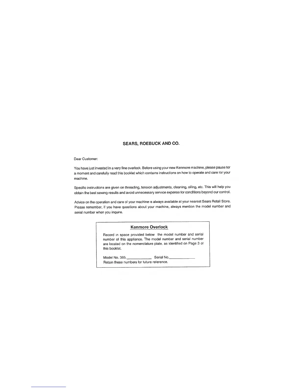 You have just invested in a very fine overlock. Belore using your new Kenmore machine, please pause tor