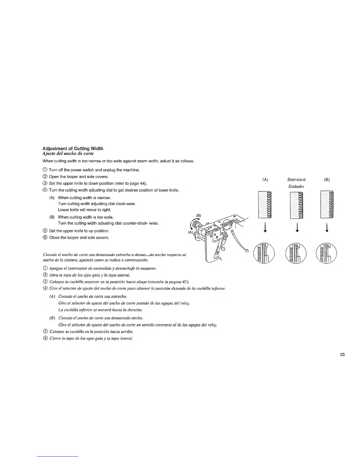(_ Turn the cutting width adiusting dial to get desires position of lower knife.