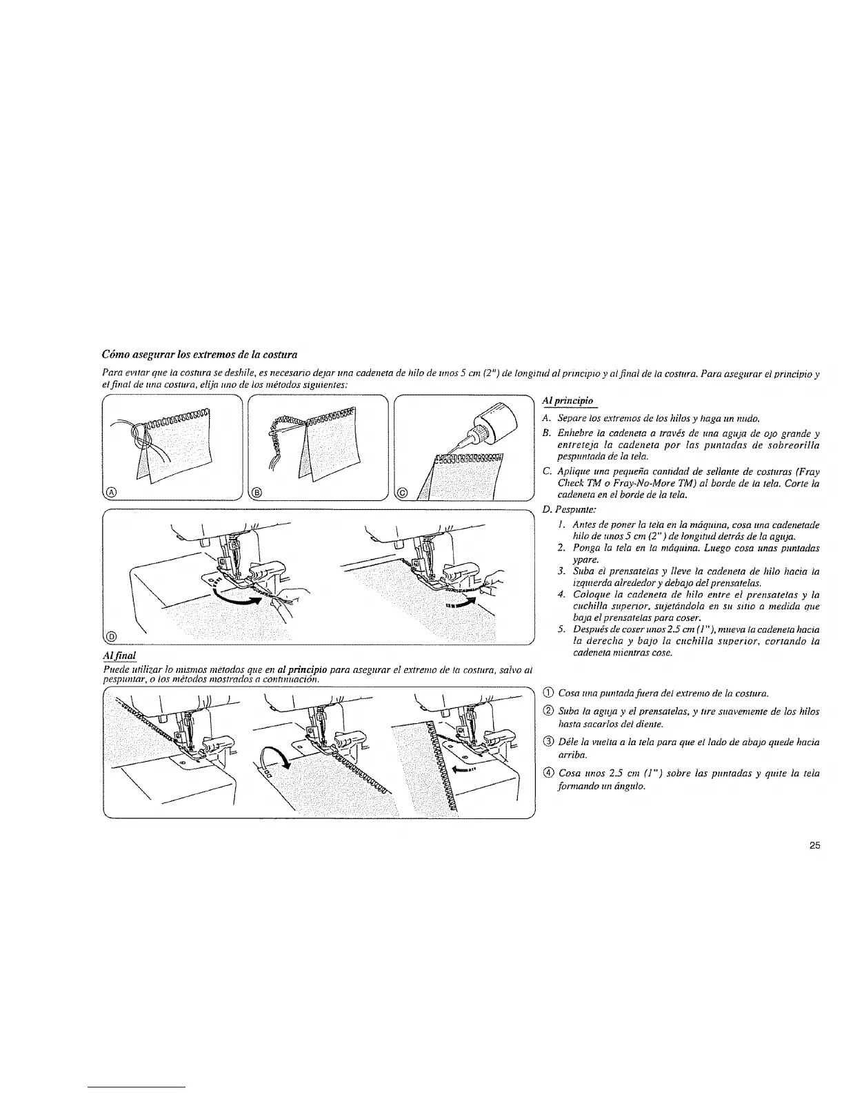 Para evttar que la costura se deshile, es necesario dejar una cadeneta de JnIo"de unos 5 cm (2P")de tongtntd al_prmctpto.... y al final de ta eostura. Para asegurar et prmcipio y