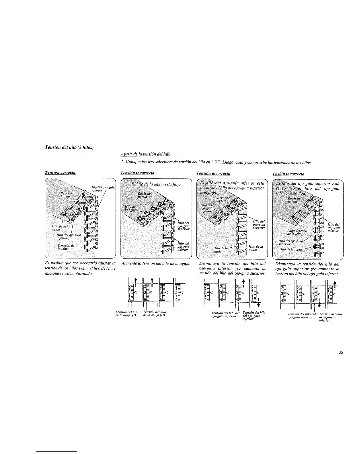 Anmente la tensidn dei hilo de ta aguja.