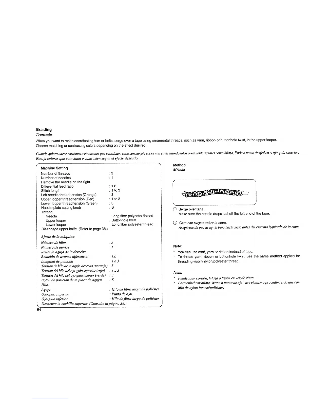 Cuando quiera hacer cordones o cintTtronesque coordinen, cosa con surjete sobre tom cmta usando hilos ornamentaLestales coredhilaza, list6no punto de dial en el ojo-gtda superior.
