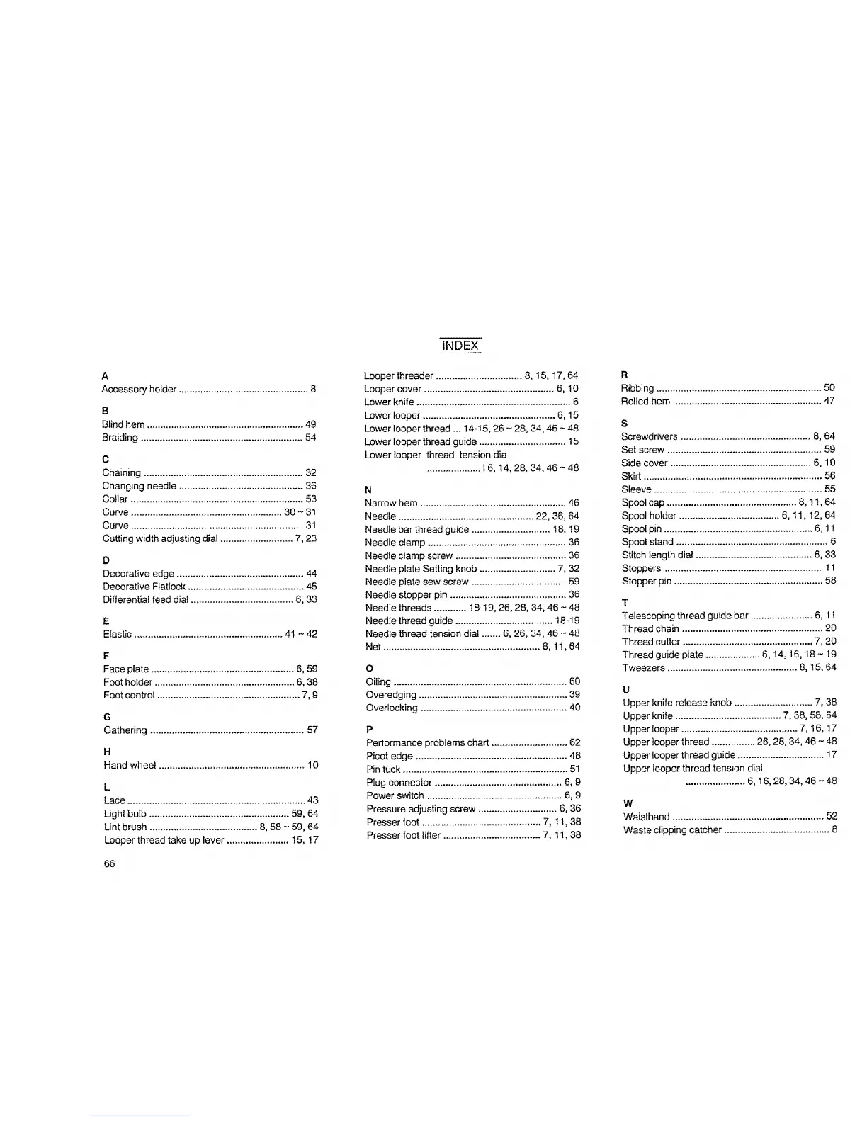 Upper looper thread ................ 26, 28, 34, 46 - 48