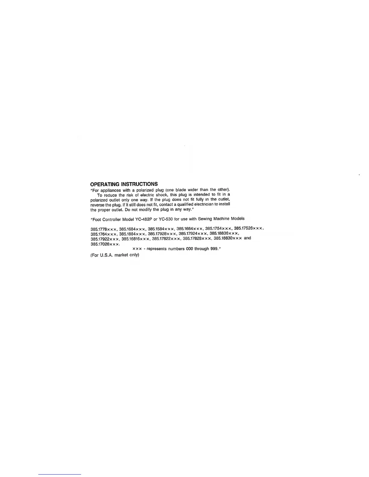 "Foot Controller Model YC-482P or YC-530 for use with Sewing Machine Models