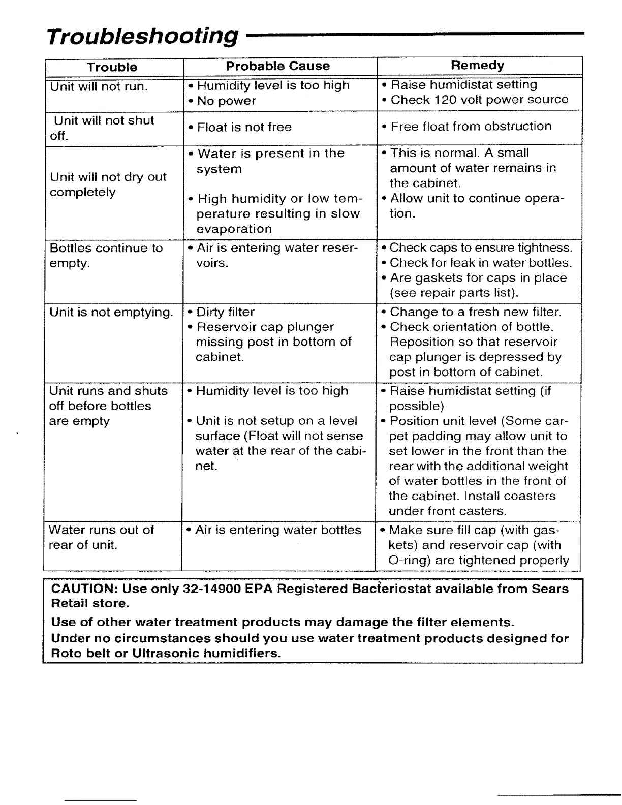 CAUTION: Use only 32-14900 EPA Registered Bac{eriostat available from Sears