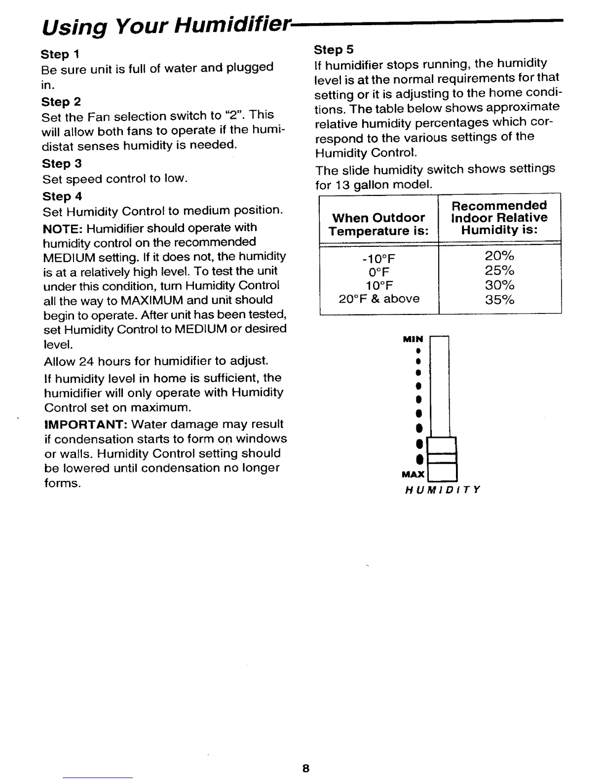 or wails. Humidity Control setting should