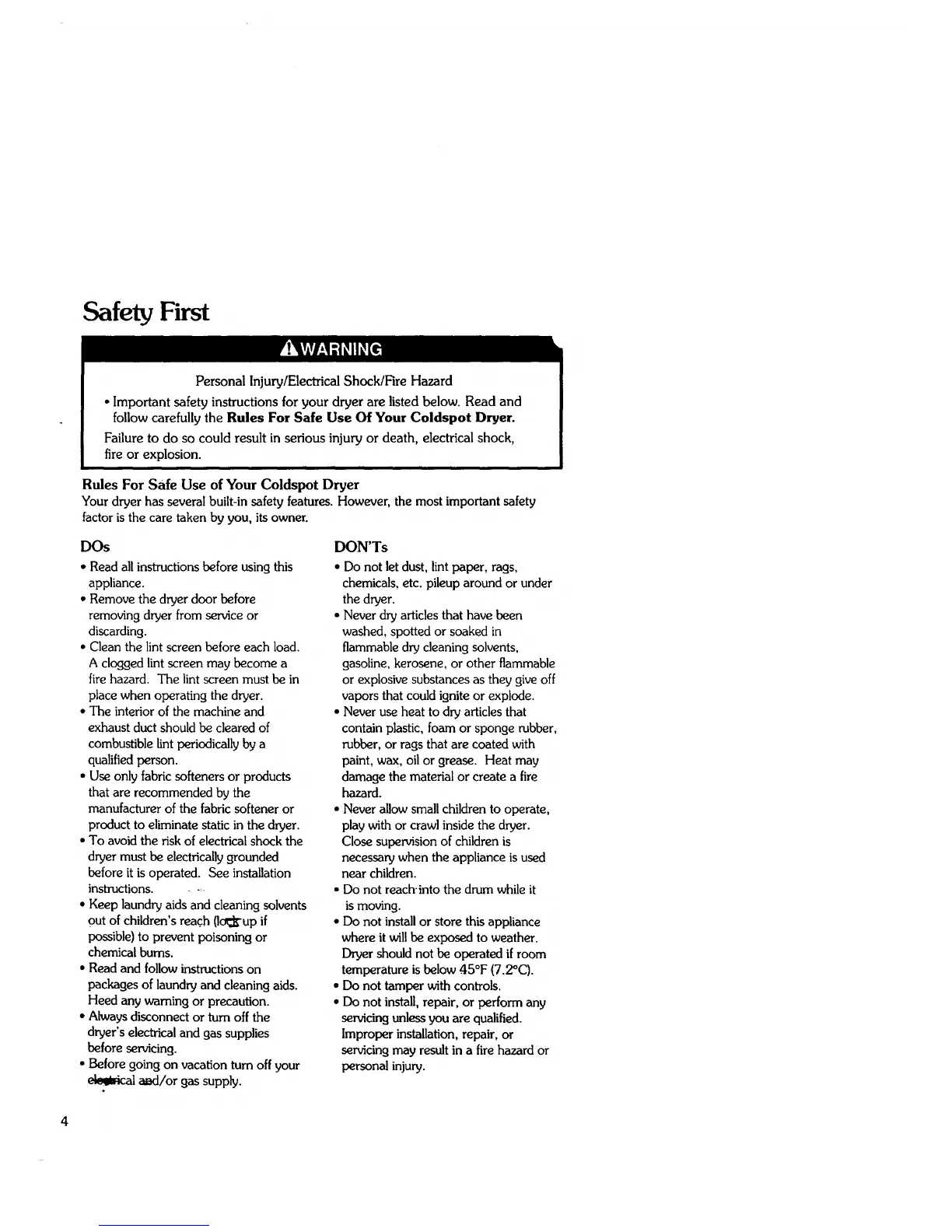 follow carefully the Rules For Safe Use Of Your Coldspot Dryer.