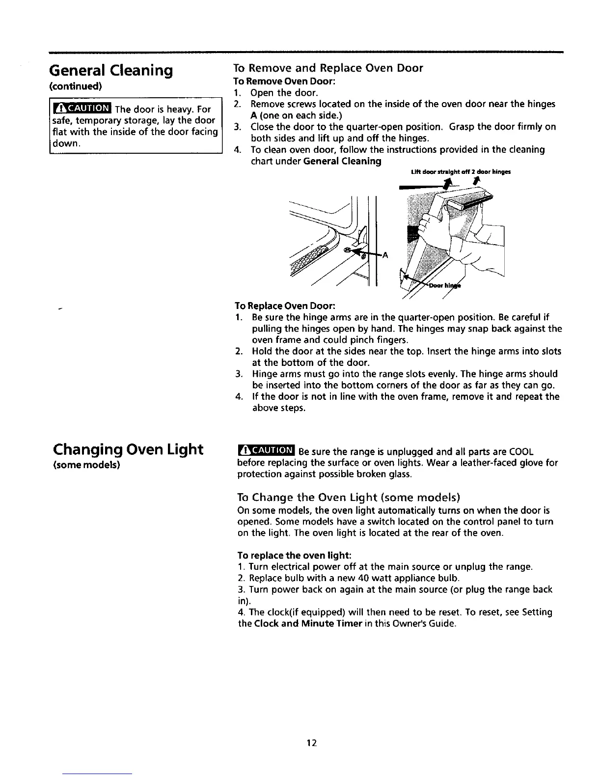 before replacing the surface or oven lights. Wear a leather-faced glove for