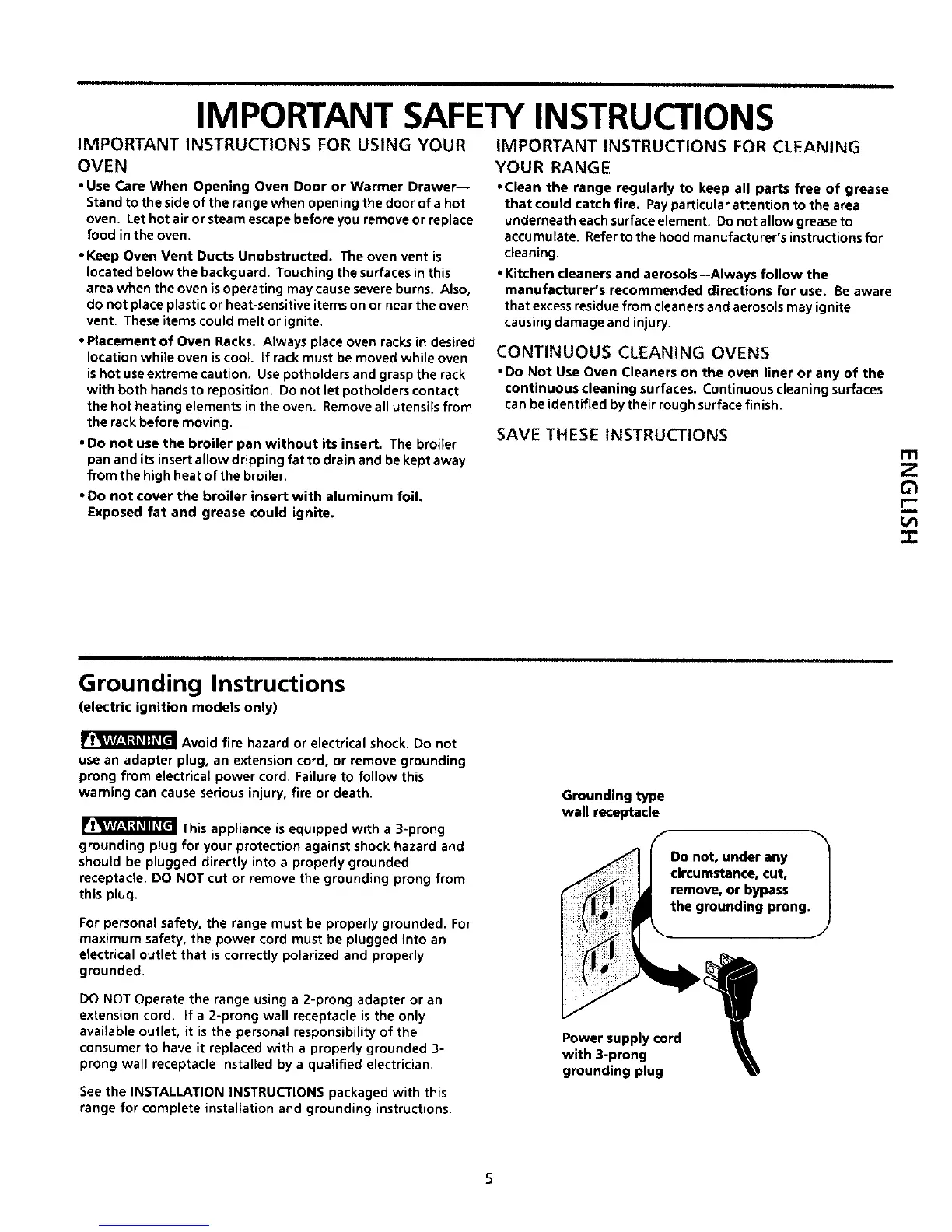 For personal safety, the range must be properly grounded. For