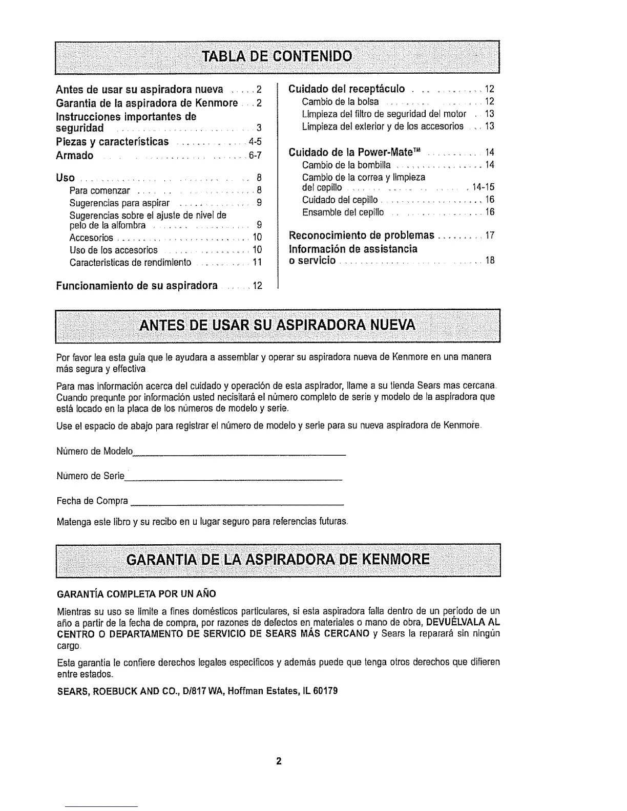 Garantia de la aspiradora de Kenmore _, _2