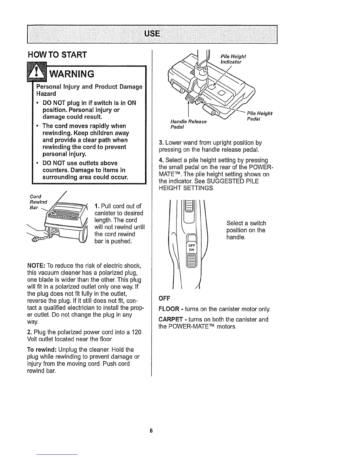 4. Select a pile height setting by pressing