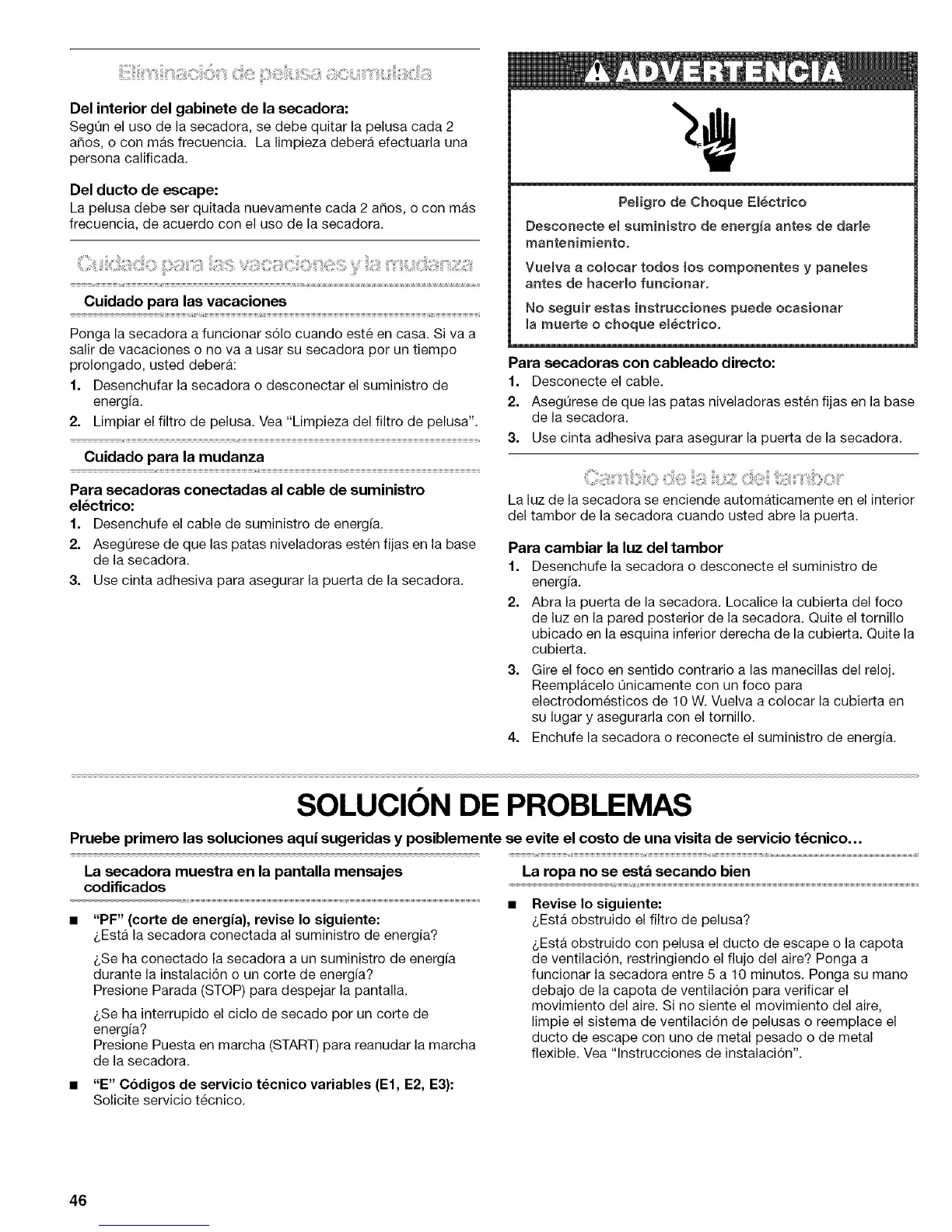 salir de vacaciones o no va a usar su secadora per un tiempo