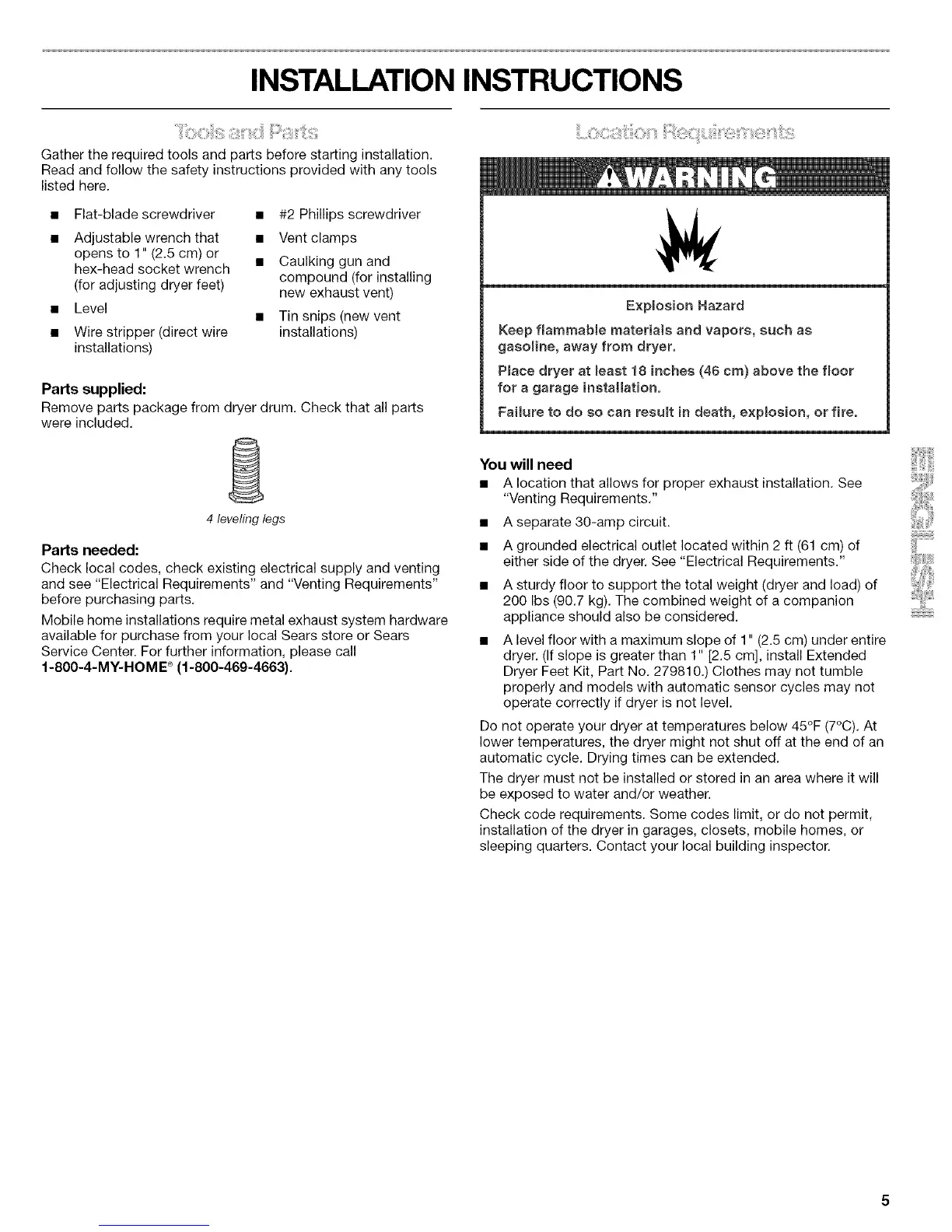 Dryer Feet Kit, Part No. 279810.) Clothes may not tumble