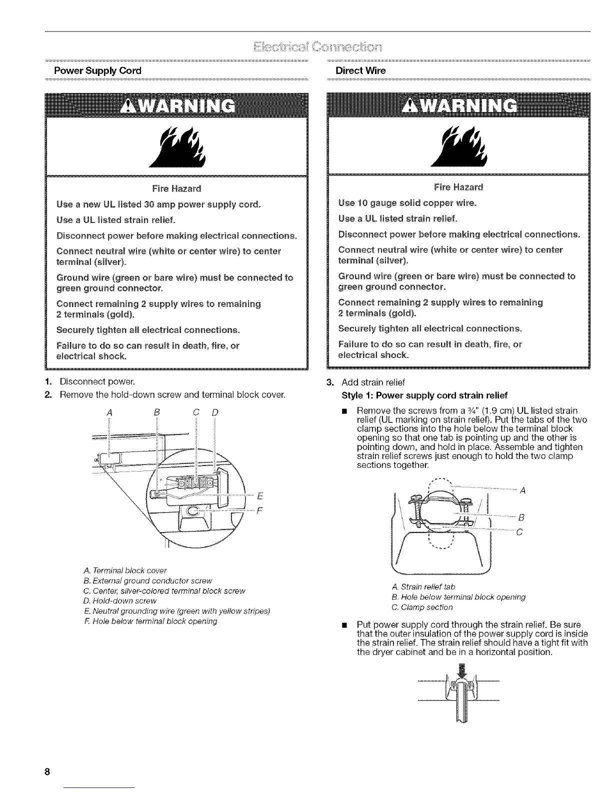 • Remove the screws from a 3/4"(1.9 cm) UL listed strain