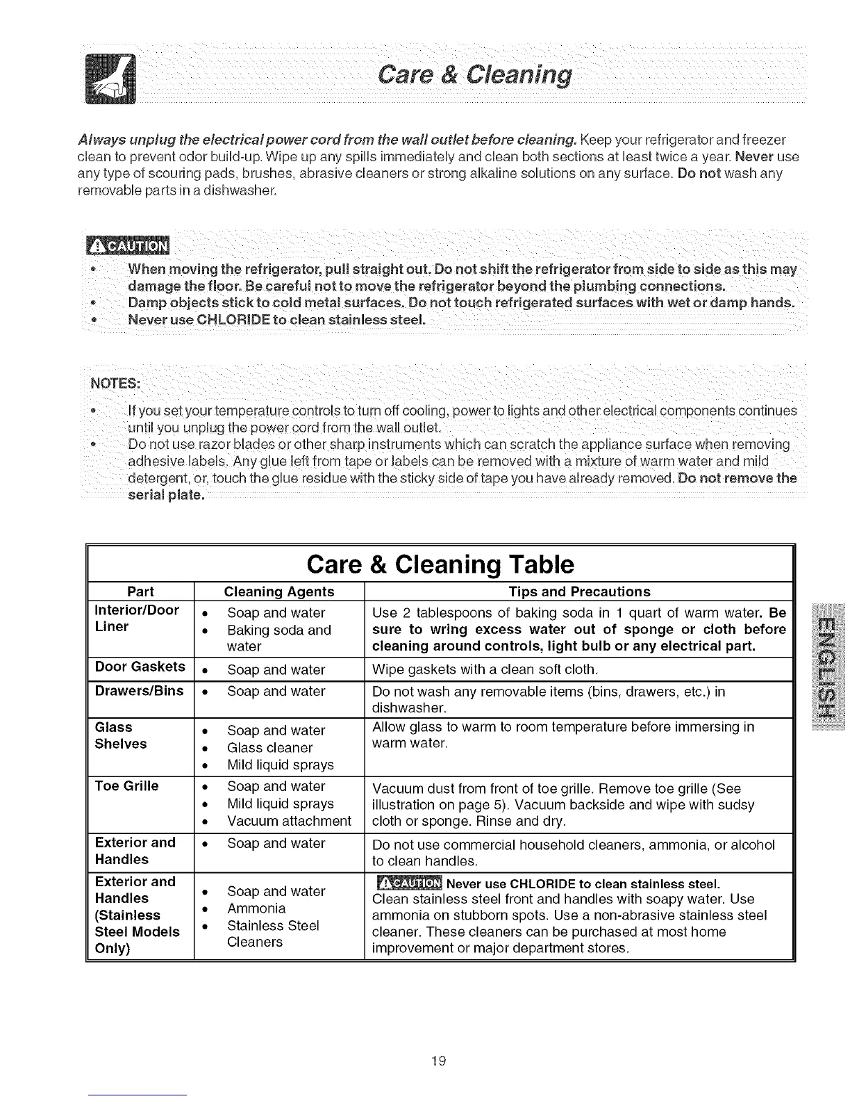 Always unplug the e/ectrica/ power cord from the wall oudet before cleaning. Keep your refrigerator and freezer