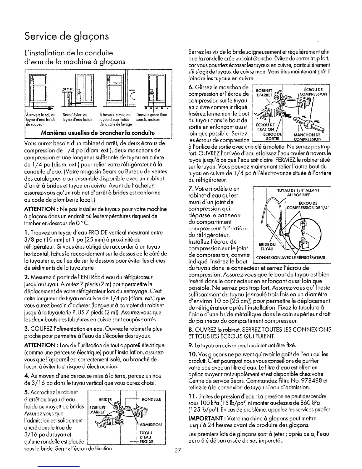 de 1/4 po (diam ext,) pour relier votre r6frig6rateur 6 la