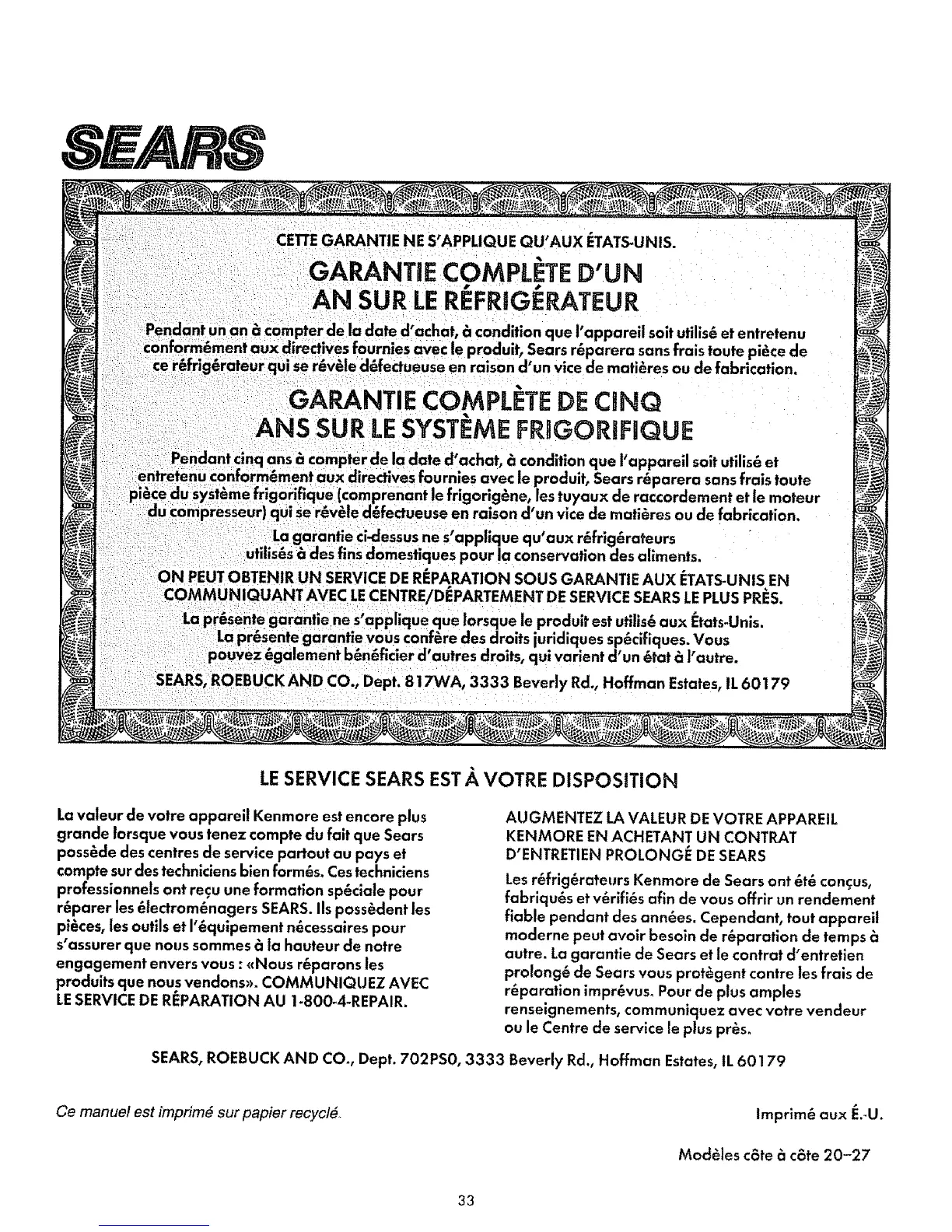 LESERVICE SEARS EST VOTRE DISPOSffION