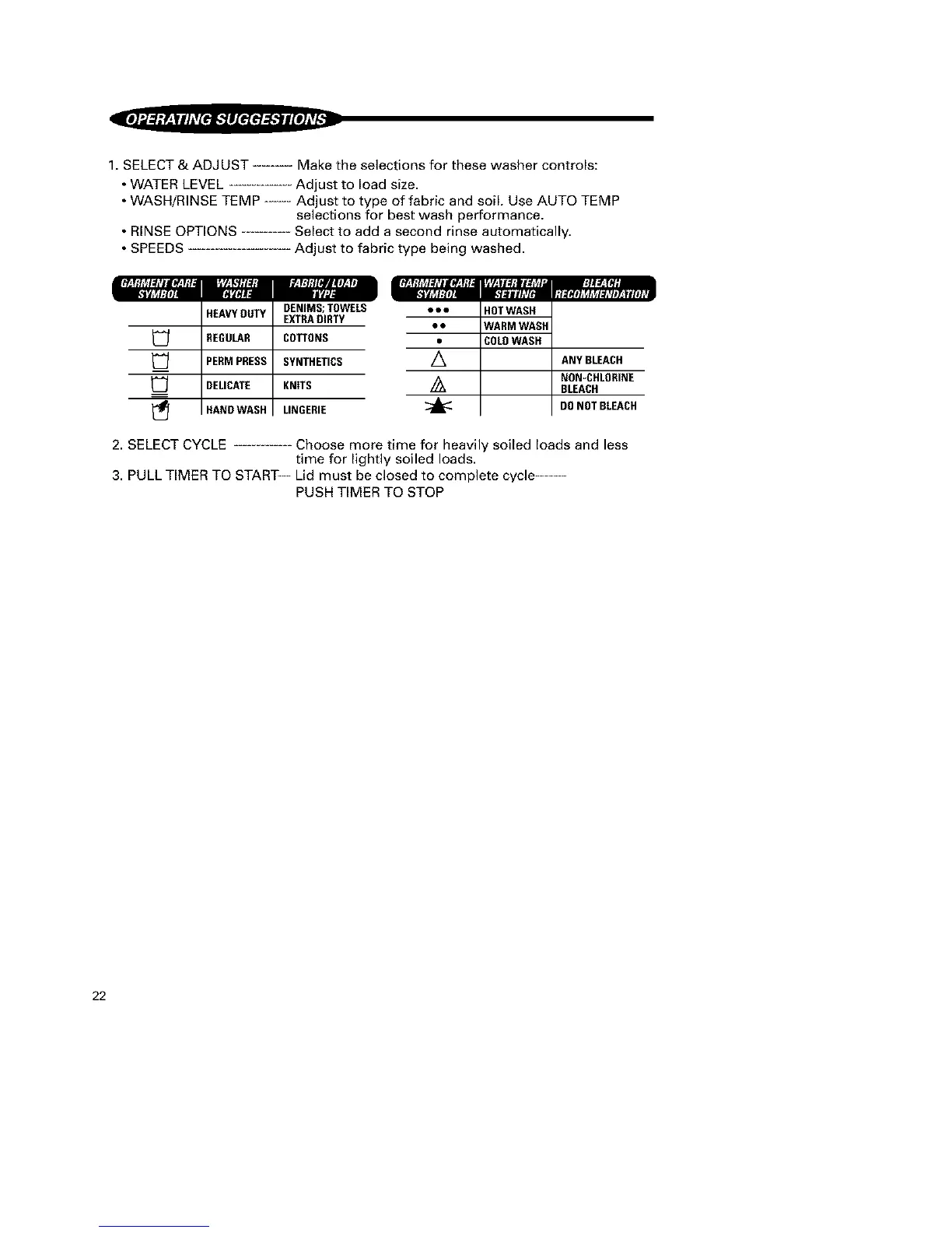 1. SELECT & ADJUST ......... Make the selections for these washer controls: