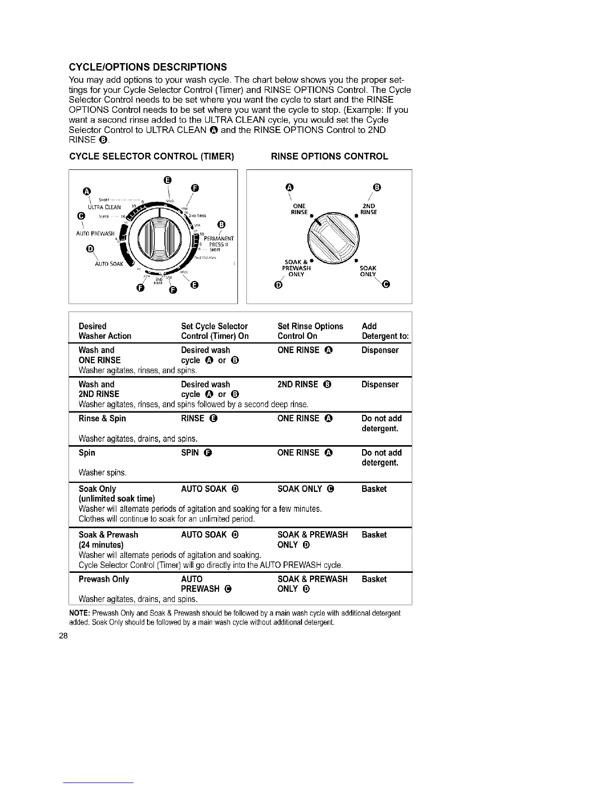 NOTE:PrewashOnlyandSoak& Prewashshouldbefollowedbya mainwashcyclewithadditionaldetergent